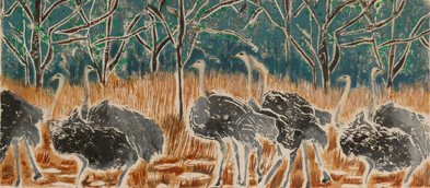 Gray Ostriches with Aqua Sky,