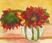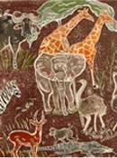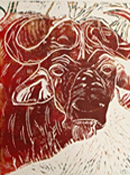 Linocut Acrylic Oil Pastel on Paper, 12 x 9 |